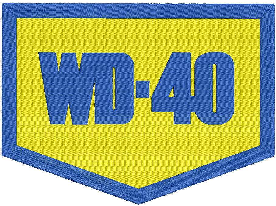This WD-40 Logo Embroidery Design brings a bold, industrial-inspired look to jackets, mechanic uniforms, tool bags, aprons, and workshop accessories. With its bright yellow shield shape and strong blue lettering, the design stands out beautifully on denim, canvas, and cotton.