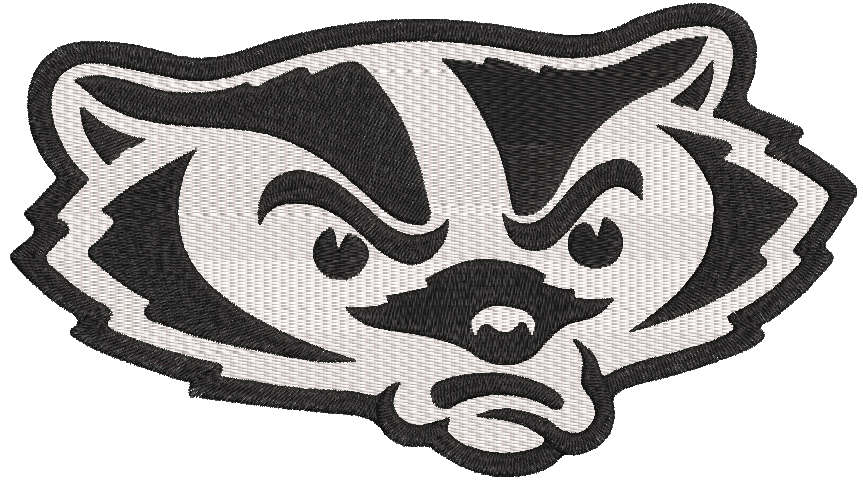 Wisconsin Badgers logo muzzle embroidery design features the iconic badger mascot face with bold black outlines and clean white fill stitching. This high-quality embroidery file is perfect for hoodies, jackets, caps, backpacks, and custom fan apparel. Designed with sharp satin stitch borders and balanced fill density, it delivers a strong, professional embroidered finish for collegiate sports-inspired projects.